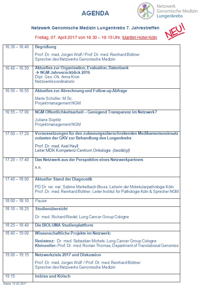 im Namen von Prof. Wolf und Prof. Büttner wir möchten Sie ganz herzlich zum 7. Jahrestreffen Netzwerk Genomische Medizin