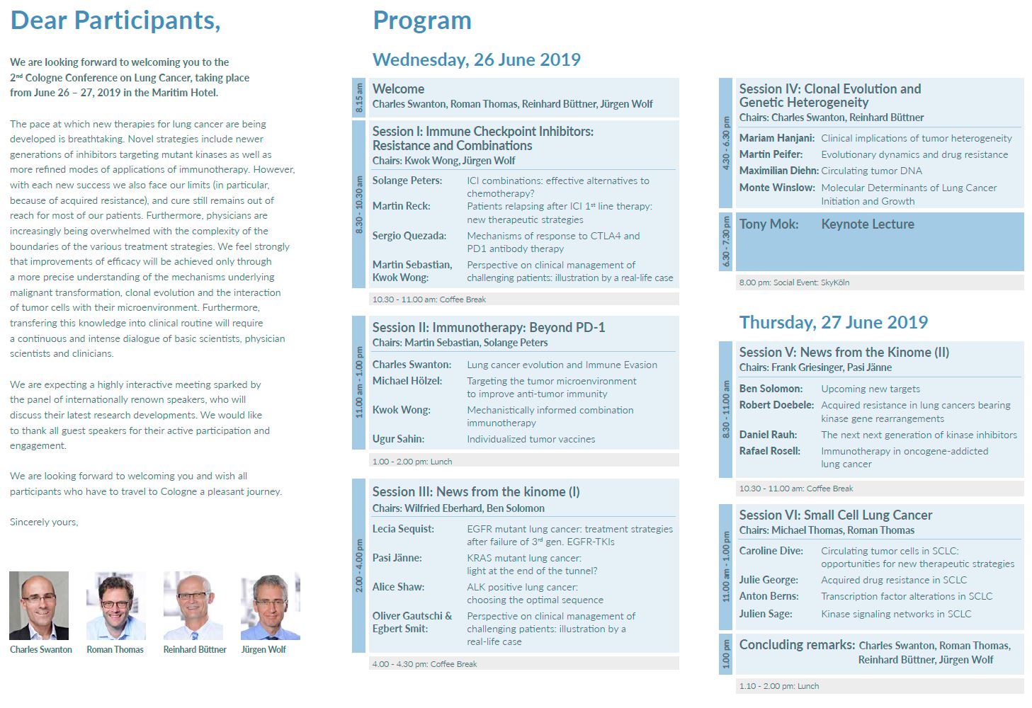 Impressions from the 2nd Cologne Conference on Lung Cancer 2019 26 June 2019 – Maritim Cologne 26 June 2019 – Social Event SkyKöln 27 June 2019 – Maritim Cologne Pictures by Tobias Vollmer Program Cologne Conference on Lung Cancer 26 – 27 June 2019 Letzte Änderung: 08/2024