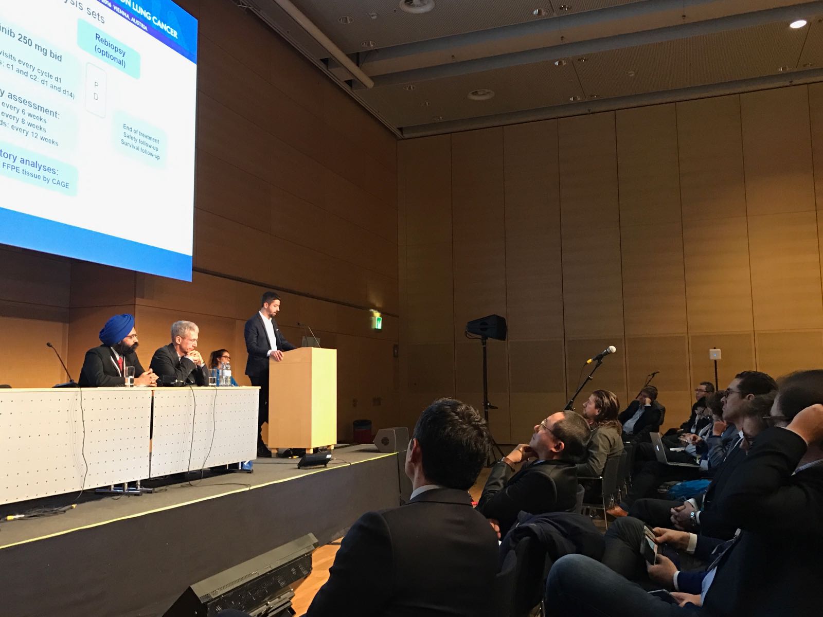 Zu der 17. „World Lung Cancer Conference“ (WCLC) der Internationalen Assoziation für die Studie von Lungenkrebs (IASLC) trafen sich in Wien vom 4.-7. Dezember mehr als 6000 Kliniker und Forscher aus mehr als 100 Ländern unter dem Motto „Together against Lung Cancer“. Neue Ergebnisse und Entwicklungen aus Präklinik, Pharmazie, Prävention, klinische Studien und Gesundheitsökonomie wurden für Lungenkrebs und andere thorakale Malignome diskutiert. Eine zentrale Frage stellte in diesem Jahr bei zunehmender Verfügbarkeit von Nächstgenerations – Tyrosinkinaseinhibitoren gegen EGFR Mutationen und ALK Fusionen die Therapiesequenz bei diesen Patienten dar. Immer mehr sprechen die Studiendaten (AURA 3, ASCEND 4, J-ALEX) für einen zukünftigen Einsatz der Nächstgenerationsinhibitoren bereits in der Erstlinie. Zunehmend wichtig im klinischen Alltag werden auch die Rebiopsien zur Identifizierung von Resistenzmechanismen.